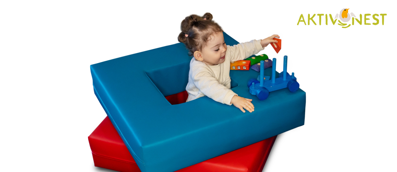 Das Aktivnest ermöglicht Kindern mit motorisch-sensorischer Entwicklungsstörungen eine aktive Stütz-, Sitz- und Stehmöglichkeit ohne dass sie fallen können, da sie durch die Absicherung aller vier Seite einen Rundumschutz haben.