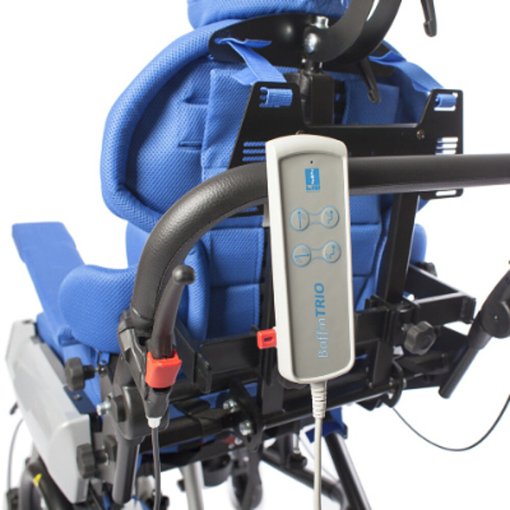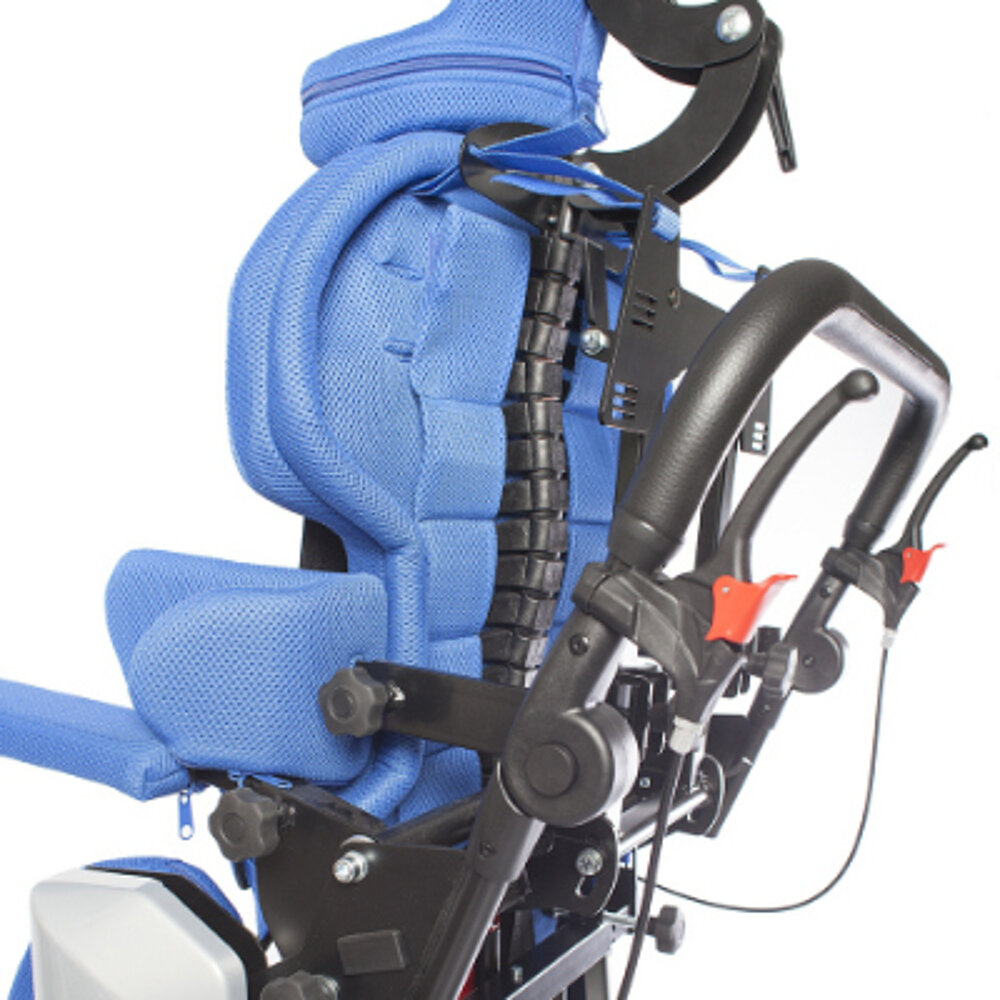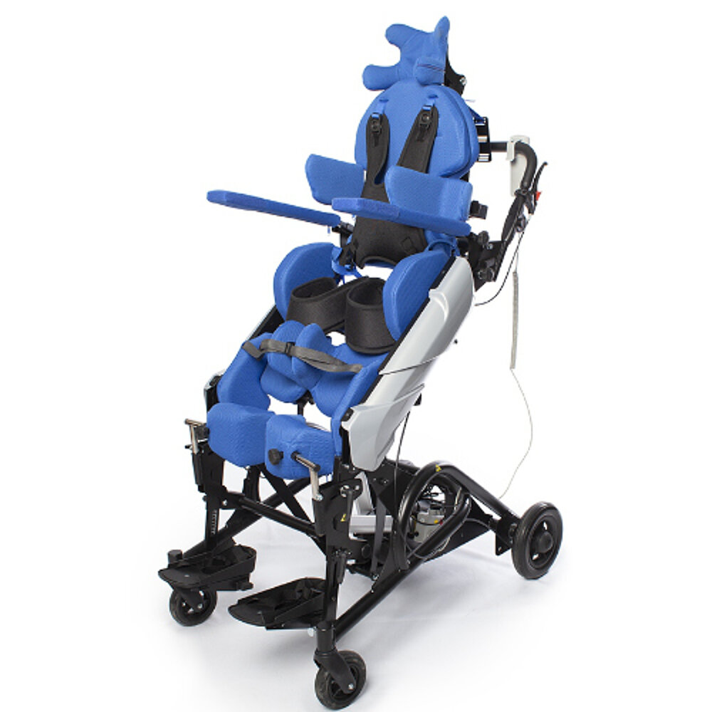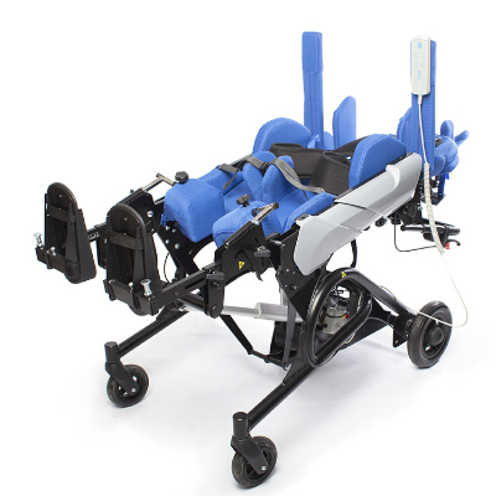 Multifunktions Stehhilfe für Jugendliche und Erwachsene. Der Transfer kann in einer Sitzposition erfolgen, dies erspart die Nutzung eines Lifts. Die gewünschte Liege- oder Stehfunktion lässt sich stufenlos elektrisch einstellen. Der „Second Spine“ Rücken ist anatomisch anformbar.