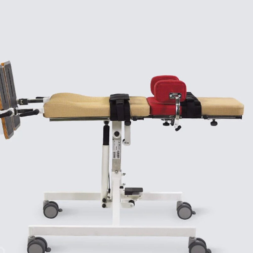 Das Bauchschräg-/Rückenliegebrett BS ermöglicht das Aufrichten bis hin zur Stehposition.