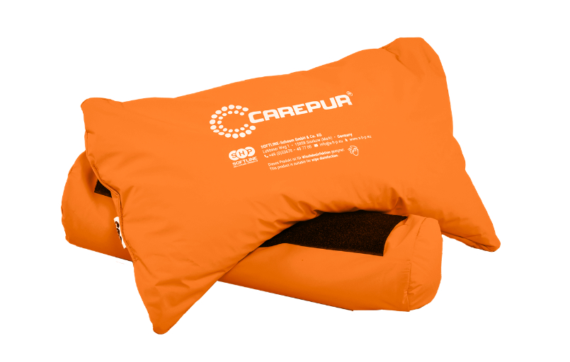 Das CAREPUR Hemi-Armkissen ist ein zweiteiliges, beidseitig nutzbares Kissen zur Weichlagerung und Stabilisierung eines hemiparetischen Arms im Sitzen, besonders im Rollstuhl. Es besteht aus einer zylindrischen Kissenbasis und einer rechteckigen Armauflage, die über Klettverschluss miteinander verbunden werden. Das Kissen entlastet den Unterarm, stabilisiert die Position und reduziert Zugkräfte im Schultergelenk.