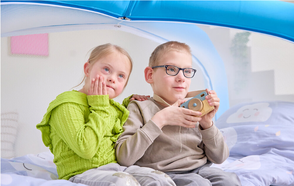 Das CloudCuddle Junior ist ein sicherer, zuverlässiger und reizarmer Ruhe- und Schlafbereich für Kinder und Erwachsene bis 50 kg mit besonderen Pflegebedürfnissen.