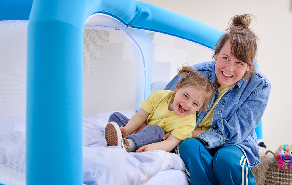 Dank seiner robusten, aufblasbaren und zuverlässigen Konstruktion unterstützt und schützt das CloudCuddle Junior adäquat, sowohl im täglichen als auch bei gelegentlichem Gebrauch. Der kompakte Raum vermittelt ein Gefühl der Geborgenheit, das zu einem besseren Tag-Nacht-Rhythmus beiträgt, sowohl im täglichen als auch bei gelegentlichem Gebrauch.