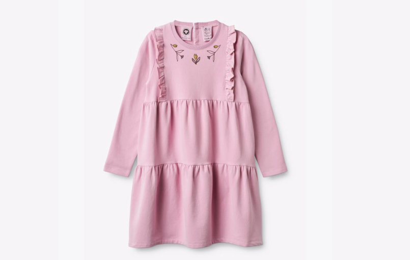 DAFNE ist ein hübsches, bequemes Kleid mit langen Ärmeln, Wildblumenstickerei und Rüschen, die dem Rock Schwung verleihen. Hergestellt aus weicher, atmungsaktiver Bio-Baumwolle, ist es ideal für den Alltag und besondere Anlässe. Dank hochwertiger Materialien bleibt die Form erhalten. Perfekt allein oder mit Leggings für einen trendigen Look.