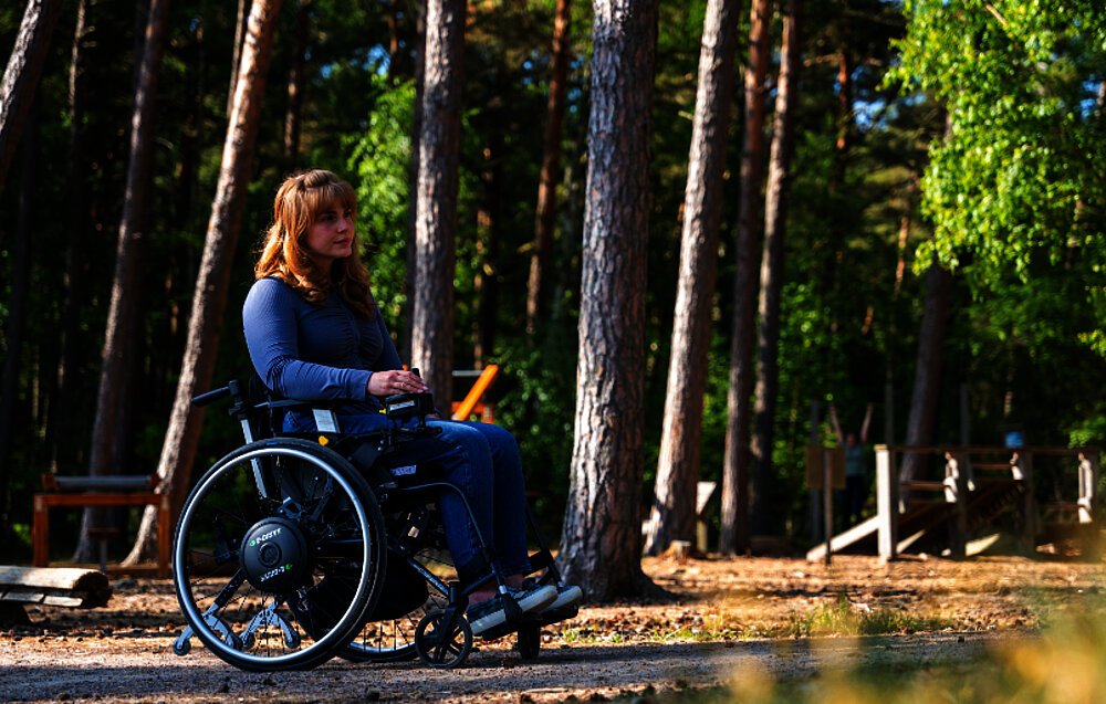 Das E-Drive Plus Antriebssystem bietet Rollstuhlfahrern Vorteile im Alltag, bei der Arbeit und zu Hause. Es kann auf drei Arten bedient werden: über den Joystick des Rollstuhlfahrers, die Standard-Begleitsteuerung oder die Intuitiv-Begleitsteuerung. Der Rollstuhl kann selbstständig durch den Joystick bewegt oder in den Freilauf geschaltet werden, um ihn manuell zu schieben. Begleitpersonen nutzen die Begleitsteuerung oder die intuitive Steuerung für eine natürliche Bewegung neben ihnen. Die Räder sind leicht und einfach demontierbar. E-Drive Plus ist mit den meisten handbetriebenen Rollstühlen kompatibel.