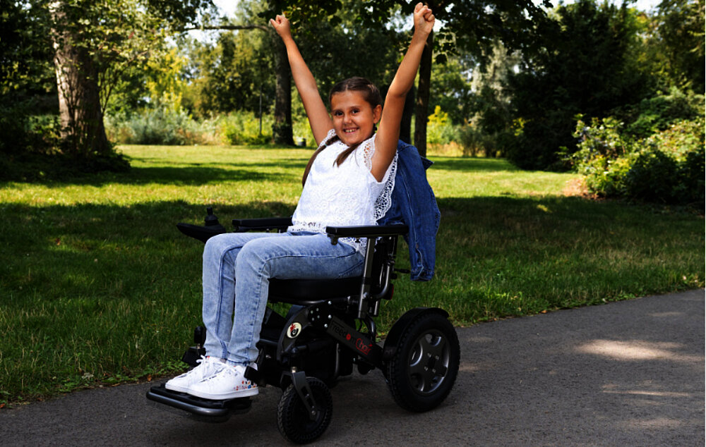 Der FreedomChair A11 ist der erste faltbare Elektro-Rollstuhl, der mitwächst. Mit seiner kleinen Größe und maximaler Leistung ist er besonders flexibel und anpassbar. Er kann mit Kindern und Jugendlichen quasi mitwachsen und lässt sich per App vom Handy aus steuern. Neben Komfort bietet er auch ein wenig Spaß. Der A11 kann in nur einer Sekunde gefaltet und leicht verstaut werden. Armlehnen, Rückenlehne und Fußbrett können individuell angepasst werden. Die Armlehnen sind in Höhe, Länge und Breite verstellbar. Optional kann die Sitzhöhe elektrisch um 5 cm angepasst werden. Das smarte Fahrpult des A11 verfügt über Sprachsteuerung, LED-Beleuchtung und einen USB-Anschluss. Mit einem Gewicht von 26 kg und einer Reichweite von 15 bis 30 km, je nach Batterien, ist er sowohl für den Innen- als auch den Außenbereich geeignet.
