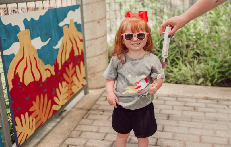 Weiches Baumwoll-T-Shirt mit verdecktem Reißverschluss in der Mitte für einfachen Zugang zu G-Sonden, Stomabeuteln und anderen zentral angeordneten Geräten.