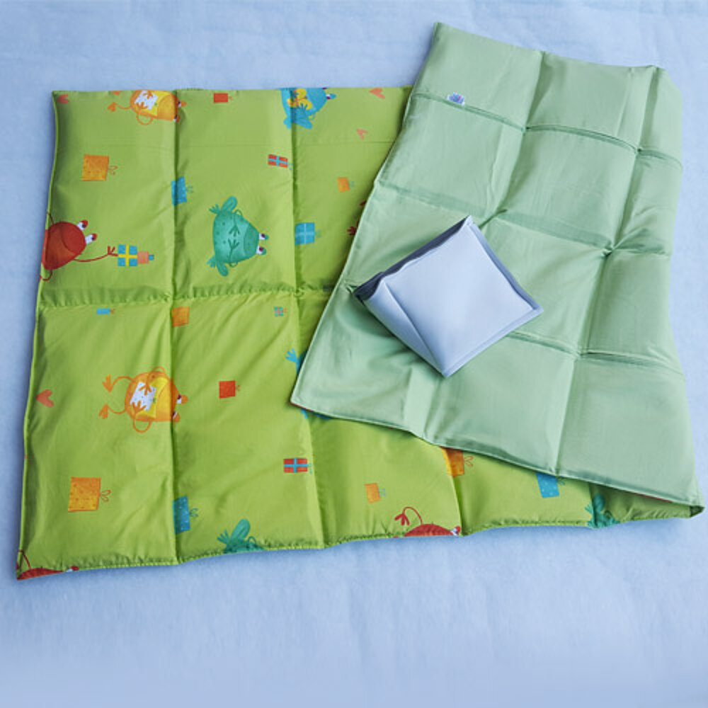 Gewichtsdecken sind mit einer waschbaren Außenhülle ausgestattet, wahlweise aus Suratec-Nylongewebe, Baumwolle PEDRO, buntem Baumwollstoff (nur Mini) oder Hawaii-Outdoor-Stoff. Sie verfügen über Reißverschlüsse und herausnehmbare, gepolsterte Gewichtssäcke mit Glasperlenfüllung, die geräuschgedämmt sind.