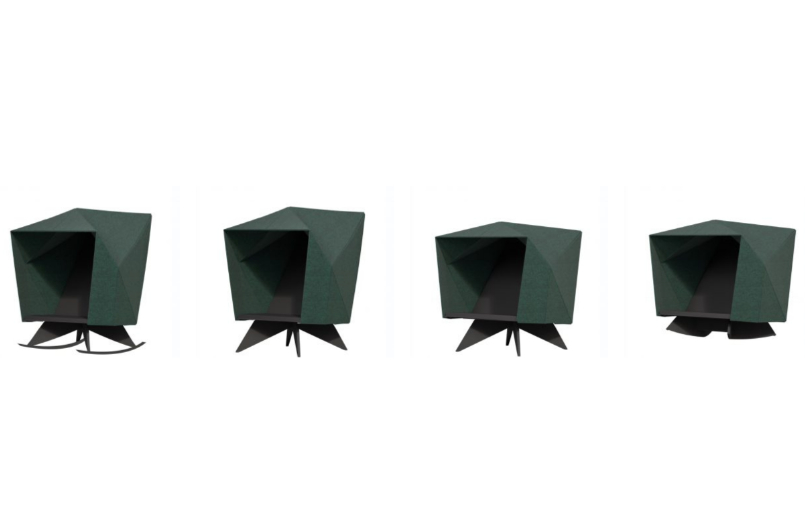 Die HabiCave ist wie eine Höhle geformt, die den Benutzer sanft umschließt und schützt.