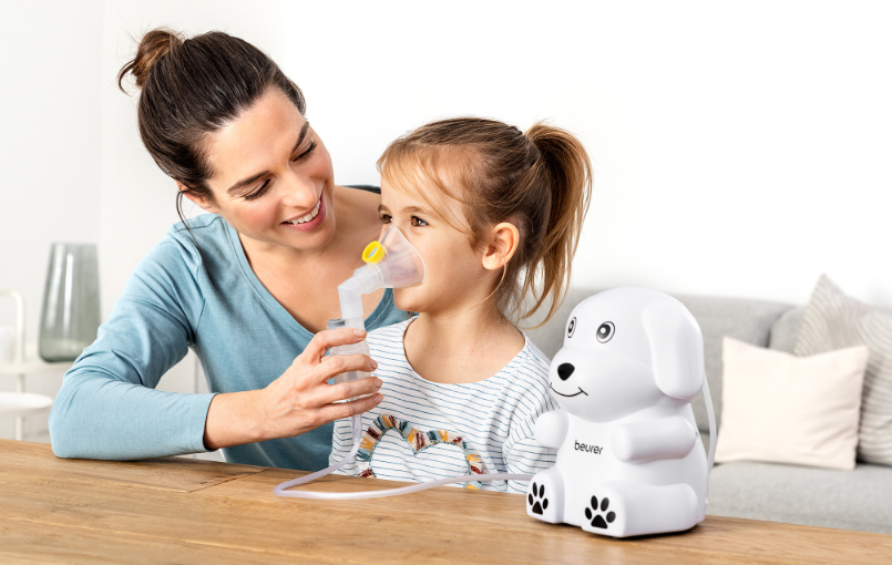 Der kinderfreundliche Inhalator IH 24 Kids von Beurer im Hundedesign ist der ideale Begleiter bei Asthma, Erkältungen und Atemwegserkrankungen. Er nutzt die effektive Kompressor-Drucklufttechnologie für eine gezielte Vernebelung des Inhalats und ist ab dem 6. Lebensmonat geeignet. Die weiche Silikonmaske schont empfindliche Kinderhaut. Das Gerät ist ein Medizinprodukt und eignet sich zur Behandlung der oberen und unteren Atemwege. Mit seiner hohen Verneblungsleistung ermöglicht es eine kurze Inhalationszeit und eine gezielte Behandlung dank eines hohen Anteils an lungengängigen Partikeln. Die Bedienung ist kinderleicht über eine Ein-Knopf-Steuerung, und das Gerät lässt sich hygienisch reinigen, da alle Teile abnehmbar sind. Alle zugelassenen Inhalationsmedikamente können verwendet werden – eine Beratung dazu erfolgt beim Arzt oder in der Apotheke. Ein praktisches Yearpack ist ebenfalls im Lieferumfang enthalten.