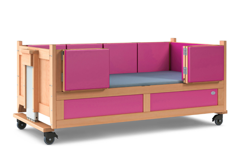 - Auf Wunsch erhältlich: Türen an zweiter Längsseite, Zugang an einem Bettende, U-Form-Sicherungsleiste und bei der Rundumpolsterung nicht 67cm sondern 39cm