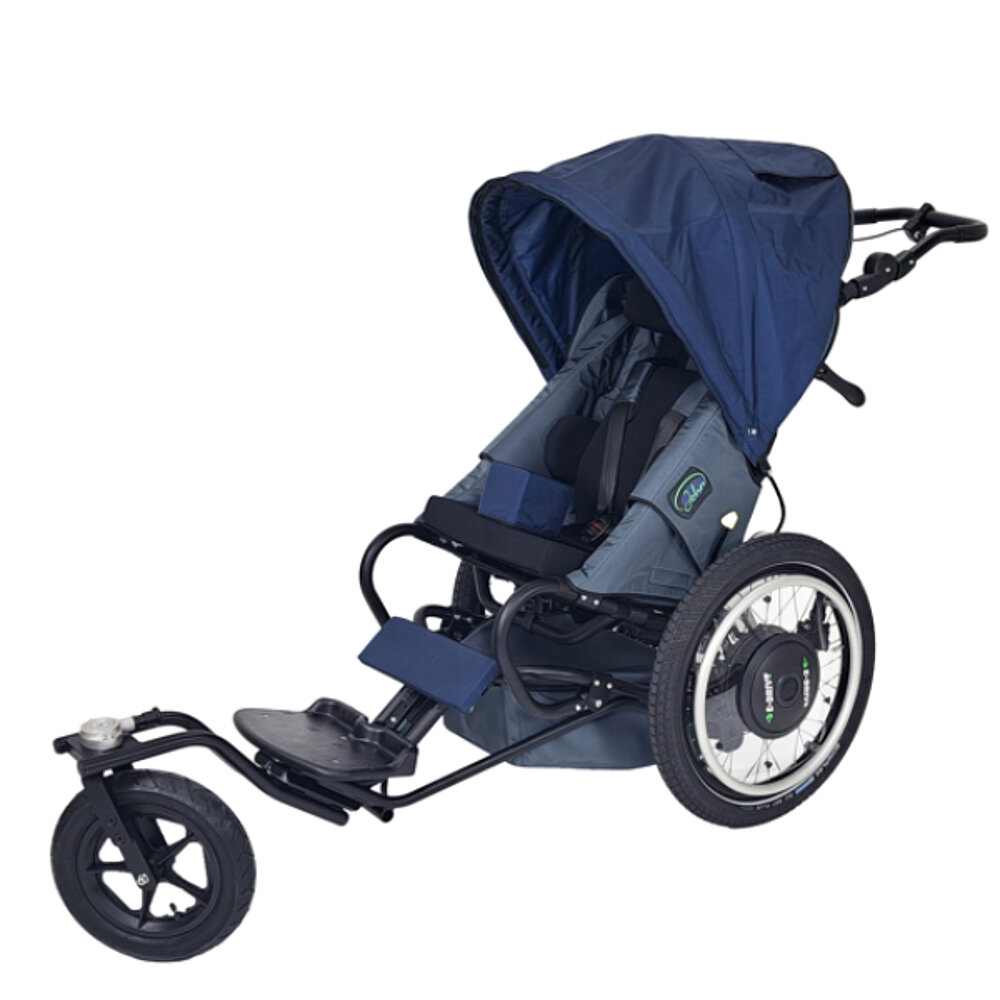 Der JOSI–pro ist eine einzigartige Reha-Karre, die sich durch die Integration sämtlicher Anpassungsmöglichkeiten für jede Alltagssituation eignet. Ob in der Stadt, im Gelände, zu Fuß, am Fahrrad, mit oder ohne Sitzschale – Blitzschnell verwandelt sich JOSI-Pro in den richtigen Begleiter. Der JOSI pro Reha-Buggy ist in vier verschiedenen Größen erhältlich, um den individuellen Bedürfnissen von Kindern mit einer Körpergröße von ca. 75 cm bis 1,80 m gerecht zu werden. Das maximale Nutzergewicht liegt bei 90 kg. Ihr könnt aus zwei verschiedenen Rahmenfarben und insgesamt sechs modernen Stofffarben auswählen. Der Reha-Buggy verfügt über einen Aluminiumrahmen, der sowohl gefedert als auch faltbar ist. Trommelbremsen mit Parkfunktion bieten zusätzliche Sicherheit. Das Sitzkissen und die Rückenlehne sind verstellbar und gepolstert, um einen angenehmen Sitzkomfort zu gewährleisten. Der Sitzwinkel kann auf bis zu 30° eingestellt werden und die Rückenlehne ist stufenlos verstellbar. Der Reha-Buggy kommt in der Standardausrüstung mit 16" Hinterrädern und einem 12,5" großen starrem Vorderrad. Es stehen weitere Optionen für die Vorderradbereifung zur Auswahl, um den Bedürfnissen unterschiedlicher Geländearten gerecht zu werden. Ein Sonnenverdeck betet Schutz vor Sonneneinstrahlung und auch darüber hinaus ist für den Reha-Wagen diverses Zubehör, wie z.B. ein Regenschutz erhältlich.