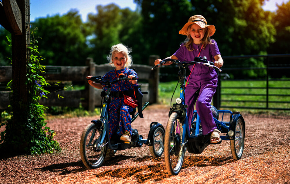 Das speziell angepasstes Kinderfahrrad AT-B bietet Kindern ab etwa 5 Jahren die Stabilität, die sie brauchen. Mit seiner dreirädrigen Konstruktion und einer breiten Trittstufe ermöglicht es sicheres und müheloses Radfahren sowie bequemes Auf- und Absteigen. Das Fahrrad ist an die Bedürfnisse Ihres Kindes anpassbar und in einer Vielzahl von trendigen RAL-Farben erhältlich. Darüber hinaus gibt es diverse Zubehörteile , um das Rad individuell zu gestalten.
