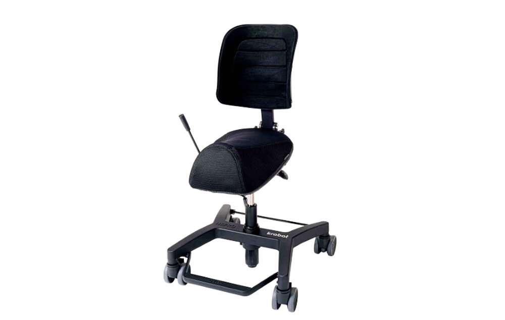 Der Krabat Jockey Basic ist ein Aktivstuhl mit Sattelsitz, der besonders einfach in der Handhabung ist. Das Untergestell ist in zwei Varianten erhältlich: mit manueller oder elektrischer Sitzhöhenverstellung. Sitz und Rückenlehne sind jeweils in zwei verschiedenen Größen verfügbar und ermöglichen eine individuelle Anpassung.