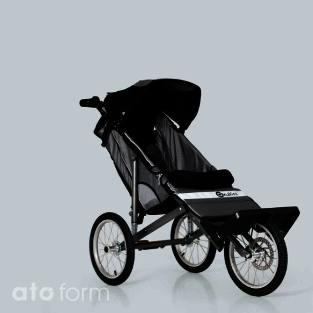 - Faltbarer Aluminiumrahmen ausgestattet mit einer Vorderradscheibenbremse und einer Zentralbremse für die Hinterräder