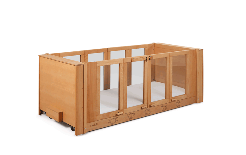 Plexiglasscheiben ermöglichen freien Blickkontakt, farbenfrohe Polster setzen kindgerechte Akzente. Gefertigt aus schadstofffreien Materialien (DIN EN 71-3) und in verschiedenen Größen erhältlich.