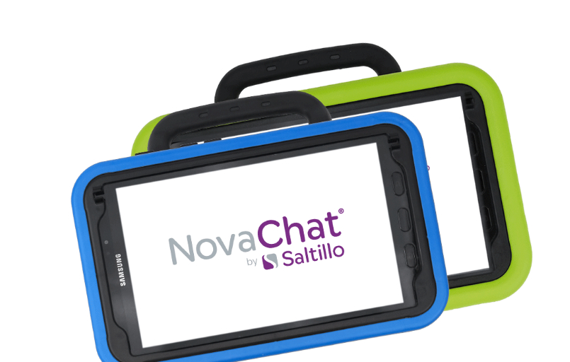 Der NovaChat 8 ist eine äußerst kompakte Kommunikationshilfe und stellt mit Abmessungen von 23,5 × 18 cm einen guten Kompromiss aus Größe und Mobilität dar. Er ist in zwei Versionen erhältlich: der Classic Line mit dünnerer Gummiumrandung und der robusteren Active Line mit dickerer Gummiumrandung.