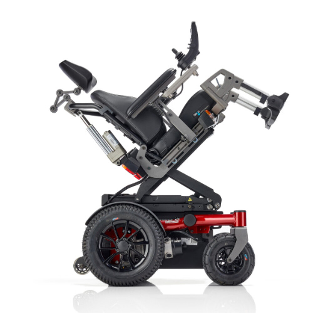 Durch die elektrische Höhenverstellung kommt er z.B. auch an Schalter im Fahrstuhl gut heran und kann mehr teilhaben. Wir haben die Variante mit Mittelradantrieb gewählt, dadurch ist unser Sohn tatsächlich sehr wendig unterwegs, kann sehr gut auf kleinem Raum drehen. Der Rollstuhl ist vor allem im Vergleich zu anderen Modellen sehr schmal, durch das Hinterrad/Steigbegrenzer/Kippschutz allerdings relativ lang. Die Sitzhöhe ist durch die ganze Technik leider recht hoch, sodass viele Tische nicht unterfahrbar sind. Auf Augenhöhe mit anderen Kindern zu interagieren ist aufgrund der Ausgangshöhe häufig auch schwierig.