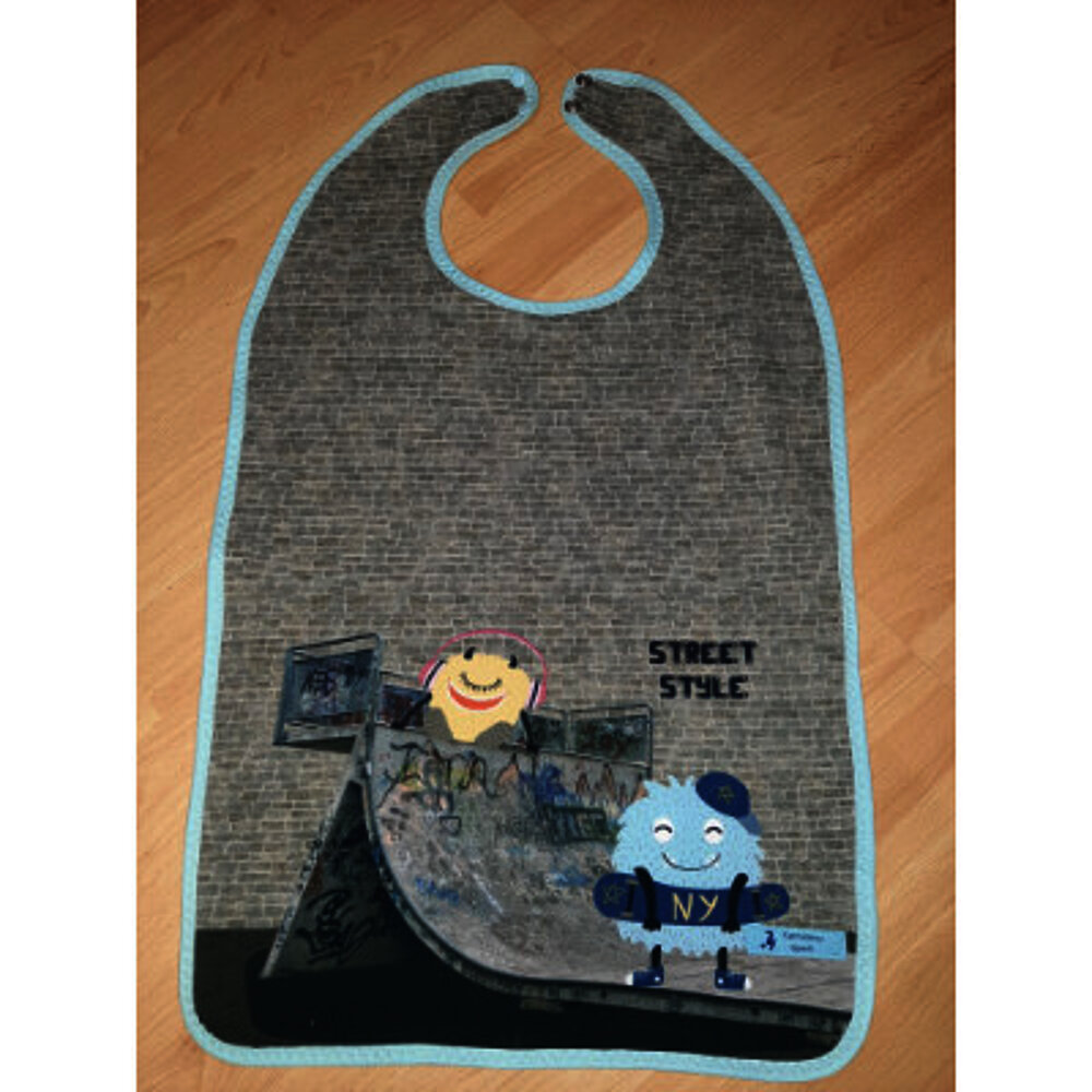 - bei den Schlupf-Lätzchen ist der Halsausschnitt mit Bündchen eingefasst und nach Kopfumfang individuell geschnitten