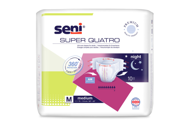 Die Seni Super Quatro Inkontinenzhosen bieten bewährten Schutz bei schwerer Harn- und Stuhlinkontinenz. Dank elastischem Bund und vier Klettverschlüssen passen sie sich optimal an. Seitlicher Auslaufschutz und Feuchtigkeitsverteilung sorgen für zuverlässige Sicherheit.