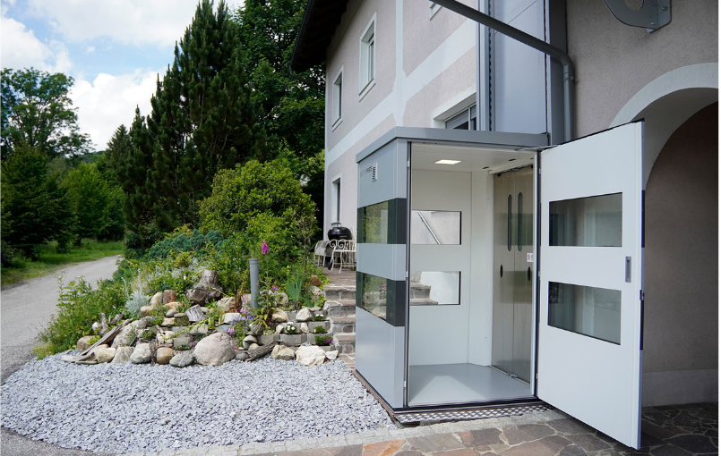 Der QuattroPorte Kabinenaufzug verbindet elegant alle Etagen Ihres Gebäudes – ganz ohne Schacht und mit minimalem Eingriff in die Bausubstanz. Das moderne, anpassbare Design fügt sich nahtlos in jede Umgebung ein. Der Platz unter der Kabine bleibt vollständig nutzbar, etwa als Garagenzufahrt oder Gehweg. Der Homelift bietet ausreichend Raum für den Transport von Staubsaugern, Wäschekörben oder großen Taschen. Genießen Sie den Komfort, nie wieder schwere Lasten die Treppe hinauftragen zu müssen. Der QuattroPorte sorgt für Barrierefreiheit und lässt sich sowohl im Innen- als auch im Außenbereich integrieren – ideal auch für Menschen mit Handicap.