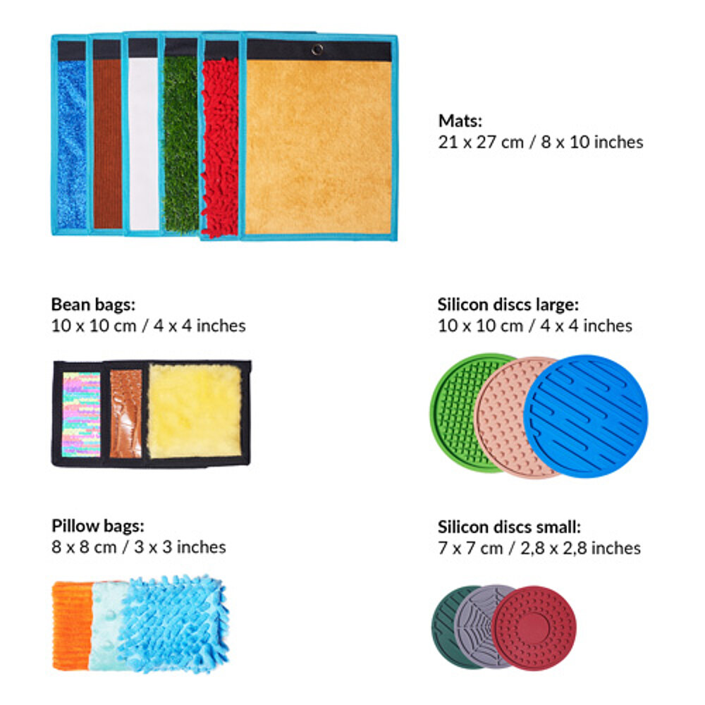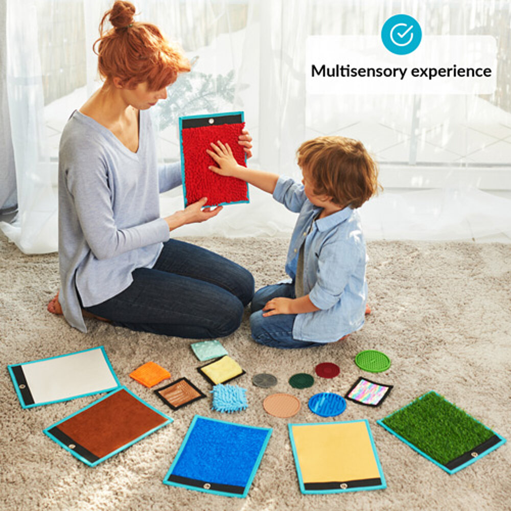 Diese sensorischen Fliesen bieten Kindern eine sichere und interaktive taktilen Spielumgebung zur Entspannung und Förderung der Konzentration. Unsere Sinnesmatten für autistische Kinder sind effektive Werkzeuge zum Stressabbau und zur Unterstützung der Konzentration. Mit dem Sensorik-Set wird das Lernen zum Spaß und fördert die Sprachentwicklung, Problemlösungsfähigkeiten sowie die Fein- und Grobmotorik. Diese vielseitigen Matten, Scheiben und Bean-Bags können in verschiedenen Umgebungen wie zu Hause, in Therapiesitzungen und Klassenzimmern verwendet werden und lassen sich leicht mit einem feuchten Tuch oder milder Seife und Wasser reinigen.