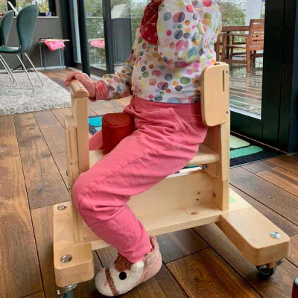 Man könnte auch noch den Oberkörper fixieren mit einem Gurt - Loch dafür ist vorgesehen. Auch sonst ist es gut vorbereitet, um es einfach zu verstellen.