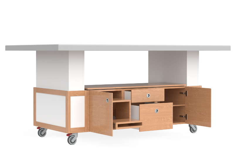 Die Therapieliegen sind universell einsetzbar. Alle Therapieliegen sind höhenverstellbar. Optional kann die Liegefläche in der Länge durch abklappbare Elemente erweitert werden. Durch die 13,5 cm hohen Bremsrollen sind alle Therapieliegen rollbar und feststellbar. Die Größen S, M und L mit unterschiedlich vielen Unterschränken sind verfügbar. Die Therapieliege S kann mit einem, die Therapieliege M mit zwei und die Therapieliege L mit drei Unterschrankmodulen ausgestattet werden. Alle Varianten können ebenso ohne Unterschränke gefertigt werden. Die unterschiedlichen Module können frei kombiniert und angeordnet werden. Durch die Möglichkeit der Farbauswahl für den Kunstlederbezug der Liege passt sich die Therapieliege optimal den Räumlichkeiten an. Durch einen eingebauten Stoppsensor besteht zwischen Korpus und Therapiefläche keine Klemmgefahr.