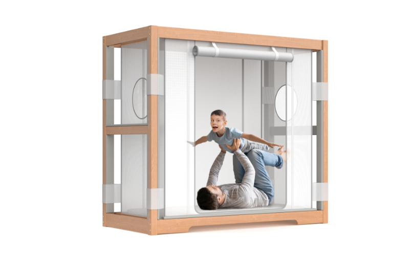 Unser Modell TOBI wird speziell für sehr aktive und autoaggressive Kinder gefertigt. Diese Kinder brauchen sichere Orte um sich vor Selbstgefährdung und auch ihr Umfeld zu schützen. Genau solchen Kindern bietet unser KayserBett TOBI einen Rückzugsort. Das Bett besteht aus einem massiven Holzrahmen, in den ein Netz gehängt wird. Durch dieses extrem elastische Netz können Kinder sich körperlich vollkommen verausgaben, um anschließend wieder zur Ruhe zu kommen. Das Netz federt die Kraft der Schläge und Tritte ab – somit verpufft die gesamte Wucht. Schnell ist zu beobachten, wie sich die Kinder wieder entspannen. Im Vergleich zu Betten in denen Kinder direkten Kontakt zu Holz oder Acrylglas haben, werden durch das Netz im Bettinnenraum laute Materialkontakte vermieden. Der massive Buchenrahmen wird zusammengebaut und das Netz eingehängt. Das feinmaschige Netz ist von innen nach außen nahezu durchsichtig. Das Bett hat eine immer gleichbleibende Innenhöhe von 180 cm. Somit haben die Kinder genügend Platz um sich im Bett aufzurichten. Durch das Netz, welches auch schwer entflammbar ist, wird das Bett nicht nur Austobeort, sondern hat auch eine sehr wohnliche, zeltartige Atmosphäre. So kann unser TOBI auch schnell mal zum Zentrum für Abenteuer werden.