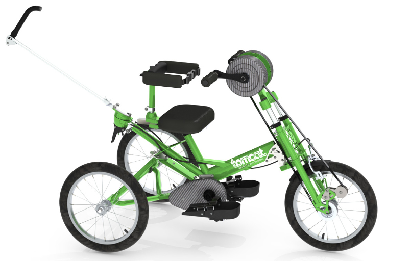 Der Handy ist eine handgesteuerte Version des berühmten Fizz-Dreirads von Tomcat, das Carer Control™ bietet (Lenk- und Bremsüberwachung bei Bedarf), einen leichten, zweiteiligen Rahmen (für einfachen Transport und Aufbewahrung), Trailer-Trike™-Anpassung (für Familienradfahren), Dual Axle™ (umschaltbare Achse für Training oder plötzliche Notfälle) und einen Swivel Saddle™ (für leichteren Zugang).