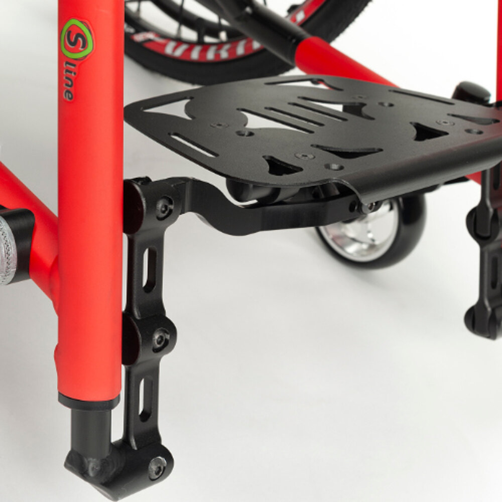 Ein herausragendes Merkmal des TRIGO S ist die feste Fußplatte und die höhenverstellbare Seitenplatte. Der Schwerpunkt des Rollstuhls kann angepasst werden, um den individuellen Bedürfnissen der Nutzer gerecht zu werden. Je nach Einstellung kann ein Großteil des Gewichts des Nutzers und des Stuhls entweder nach vorne oder nach hinten verlagert werden.