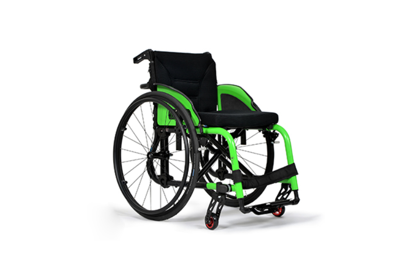 Der TRIGO S ist ein moderner und sportlicher Adaptivrollstuhl, der für mobile und unabhängige Menschen entwickelt wurde. Er zeichnet sich durch seine trendigen Hinterräder aus, die Schnellverstellräder mit schwarzen Felgen sind und sowohl in Winkel als auch Höhe verstellbar sind. Der Rollstuhl ist mit leicht zugänglichen Bremsen und kleinen vorderen Lenkrollen ausgestattet, deren Höhe von 3" bis 6" variabel eingestellt werden kann.