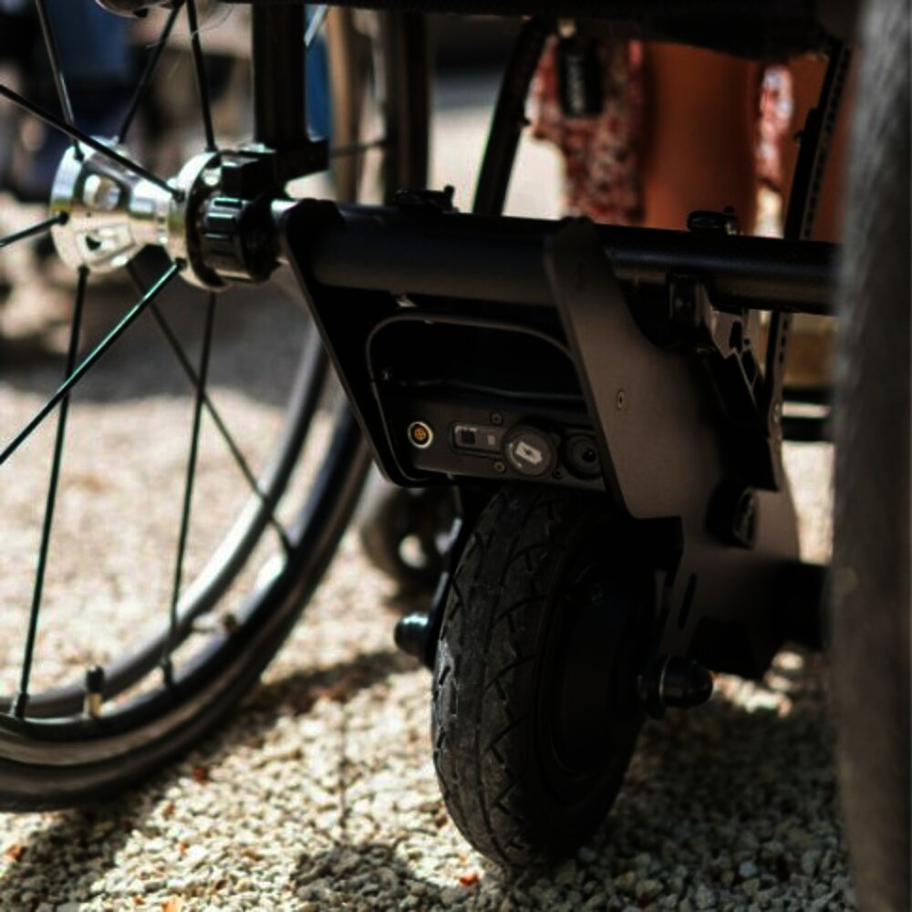Der Yomper ist ein leichter, vielseitiger elektrischer Zusatzantrieb für handbetriebene Rollstühle, der dir bei Steigungen, unebenem Gelände und alltäglichen Hindernissen hilft. Er reduziert Anstrengungen und Schmerzen, die durch das Überwinden von Hindernissen entstehen können.