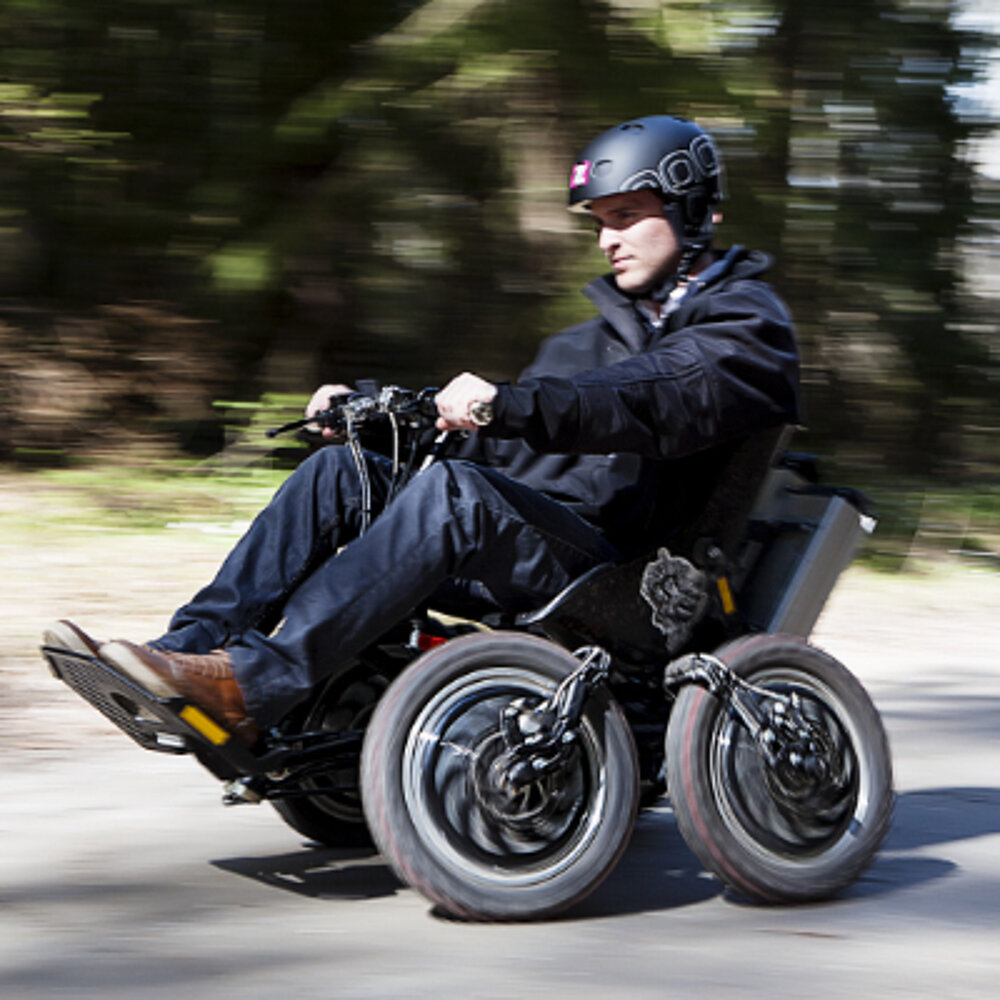 Verstellbare Beinstützen und Lenker ermöglichen eine individuelle Anpassung an jede Personengröße. Mit seinen robusten Profilreifen, dem elektrischen Vierradantrieb und dem flexiblen Stahlgestell bewältigt er mühelos Sand, Unebenheiten, Wiesen und Waldwege. Gute Bodenhaftung und die Fähigkeit, Steigungen zu bewältigen, machen ihn ideal für Abenteuer im Gelände. Mit einer Höchstgeschwindigkeit von bis zu 15 km/h und einer Reichweite von 30 km ermöglicht er sogar Ausflüge wie die Umrundung des Dümmer Sees in Begleitung.